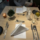 Der Kellner, der uns in Empfang genommen hatte, führte uns an den Tisch, den er vorher ordnungsgemäß desinfiziert hatte. Auffällig war im ganzen Haus durchgehend ein sehr eleganter Auftritt der Bedienungen, ebenso wie des Ambientes im Haus. Sehr edel und uns gefiel es. Durstlöscher wurden geordert und die Karten gereicht. Diese lassen sich auf der HP einsehen.