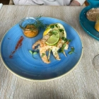 Ich hatte mich schon auf die Chevice (so auf der Karte, auf dem Bon „Ceviche“) aus Rotbarsch und Lachs und Muschelsalat kapriziert (15,50 €). Es war für mich Ceviche-Premiere und ich war neugierig, welches Ergebnis das Garen des rohen Fisches in Zitronensäure geschmacklich bringt. Hätte ich es blind verkostet, hätte ich auf eine Art weißen Heringssalat getippt. Also keine Offenbarung, aber gut erfrischend. Unterschiede zwischen den beiden Fischen konnte ich nicht feststellen, da ist die Säure wohl übermächtig. Einen guten Kontrast bildete der Muschelsalat und die Maistaler mit Majodip rundeten es gut, auch mit Sättigungseffekt ab.