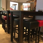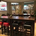 Die Aufmachung erinnert an einen Imbiss mit großzügigem Sitzbereich. Die meisten Plätze haben Hochstühle, es gibt aber auch Tische in normaler Höhe.