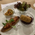 Letztendlich traf ich meine Wahl und bestellte vorweg eine Überraschungsvorspeise. Mit dem zweiten Bier wurde dann dieser Teller bei mir am Tisch serviert.