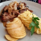 der ihr gut gefiel. Der Hauptgang war eine nur leicht modernisierte Variante des Klassikers Kalbsleber mit Zwiebeln, Apfel und Kartoffelpüree (23€).