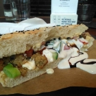 Meine Frau zeigte sich da schon etwas zufriedener, wenngleich der Verzehr ihres Falafel-Sandwichs infolge einer Überdosis Joghurt-Sauce zum süffig-tropfenden Pita-Erlebnis tendierte.