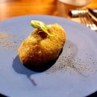 Ich freute mich lieber über die gesondert servierte, typisch spanische, nämlich eher weiche Krokette mit Pilzfarce und Brunnenkresse!
