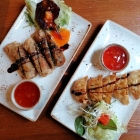 Die fünf frittierten, mit Hühnerfleisch und Gemüse gefüllten Gyoza wurden zeitgleich mit den drei Nem serviert.