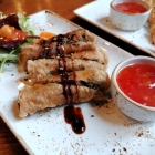 Die fünf frittierten, mit Hühnerfleisch und Gemüse gefüllten Gyoza wurden zeitgleich mit den drei Nem serviert.