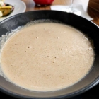 Die Suppe kam mikrowellen-schnell, sehr heiß und mit deutlicher „Haut“!