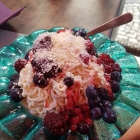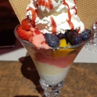Am Erdbeerbecher gibt es nix zu meckern. Frisches, selbst gemachtes Eis, mit frischen Erdbeeren. Am Spaghetti Eis war ebenfalls alles in Ordnung, die Waldbeeren waren ebenfalls frisch. Nur die kleine meckerte etwas. Das Eis war lecker, das enthaltene Himbeereis versteckte zur Überraschung viele kleine Schokostückchen im inneren. Bei den Früchten war sie nicht ganz so zufrieden, und statt frischer Früchte gab es hier den Pfirsich und die Ananas aus der Dose, und dafür auch einen Punkt Abzug. Die anderen Früchte wie Blaubeeren und Erdbeeren waren frisch. Ich war mit meinem Windbeutel mit Eis und Erdbeeren überaus zufrieden, war das doch mal eine andere Kreation, die ich so als Windbeutel noch nicht kannte.