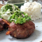 Eine leicht säuerlich schmeckende Dipsauce (Soja, Limette oder Ähnliches) und ein mit geröstetem Sesam bestreutes Häufchen Basmati-Reis komplettierten das Ensemble, das zwar gefällige Grillkost bot, aber ohne den Gaumen wirklich in gustatorische Bedrängnis zu bringen. Dazu fehlte es schlichtweg an Wumms, den eine gewiefte Marinade oder ein raffiniertes Topping durchaus hätte beisteuern können.