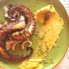 Bei meinem ersten Besuch wählen meine Begleitung und ich: in Öl eingelegte schwarze Oliven mit Oregano (2,50), die einem formschönen grünen Porzellanschiffchen serviert werden. Baby-Calamari vom Grill (8,60 Euro), die lauwarm gereicht und von cremigem Kichererbsenmus und Linsensalat begleitet werden. Köstlich! Ebenfalls hervorragend munden uns die kross gegrillten Oktopus-Arme (13,90 Euro) mit Fava, einer Art Humus aus Erbsen. Interessanterweise schwingt ein leichtes Orangenaroma mit. Zum Abschluss wird noch eine Platte Graviera (4,80 Euro) bestellt – ein kretischer Hartkäse, der mit hellem und schwarzem Sesam garniert ist und mit Honig gereicht wird. Feine Kombination! Bei meinem zweiten Besuch wähle ich die Keftedakia (5,50 Euro), die gar nicht so weit von schwäbischen Fleischküchle entfernt sind, sowie den Klassiker Tsatsiki (3,20 Euro), dem nach meinem Gusto noch etwas mehr Würze und Knoblauch gut getan hätten. Als unerwartet umfangreich entpuppt sich die Wahl meines Mitessers: der bislang unbekannte kretische Dakossalat (7,20 Euro) hat für uns am ehesten die Anmutung von Bruschetta mit Schafskäse, allerdings ist das allzu krosse Zwieback-Brot nicht jedermanns Sache.