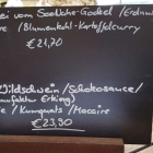 Der freundlichen Begrüßung folgte umgehend die Speisekarte, ergänzt durch 2 Tagesempfehlungen auf der Schiefertafel.