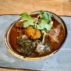 In der einen erfreute das noch heiß dampfende Ragout bereits die Nase mit Herzhaftigkeit und Würze. Letztere aber durchaus zurückhaltend und komplett ohne Schärfe im Gegensatz zur z.B. indischen Küche, was mir schon bei meinem ersten Besuch mit der afghanischen Suppe aufgefallen war.
