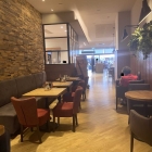 Es gibt hier so Gitterstühle in grau / bräunlich und dazu so Bistrotische. Man nutzt hier auch die Bänke vom eigentlich öffentlichen Bereich der Stadt mit. Teilweise wird mit Schirmen beschattet. Zum schnell mal einen Kaffeetrinken und ein Stück Kuchen zwischen dem Einkaufen zu sich nehmen ja , aber ein Prosecco ( Piccolo nur 1 x) Frühstück für über 33,50 € ( 2 Personen ) finden wir es hier nicht gerade einladend. 2 Sterne