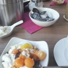 Morgens um 7 ist hier die Welt noch in Ordnung, doch das wird sich bald ändern. Hinterm üppig ausgebreiteten Büffet steht ein einziges Servicemädel, das möglicherweise kaum eingelernt wurde, wenig versteht und etwas unbeholfen agiert. Schon nach einer Stunde verliert der Manager die Fassung, ruft verzweifelt „Ogottogott“ und rauft sich die Haare angesichts des morgendlichen Gästeansturms und der Hilflosigkeit des offenbar ungelernten Personals. Unserer Bitte nach einem Rührei kommt man nur zögerlich und spärlich nach, leere Platten am Büffet können nicht schnell genug nachgefüllt werden, manche Produkte scheint man nur unter Mühen aus den Speisekammern herbeigeschafft zu haben… Alles wirkt etwas unkoordiniert und chaotisch. Zudem ist von den drei Kaffeeautomaten nur einer in Betrieb und wird immer wieder lahmgelegt. Dabei ist das Büffet durchaus vielfältig angelegt: diverse Wurst- und Käsesorten, Lachs (der schnell nicht mehr nachgelegt wird), Eierspeisen, Joghurt, Müsli, Nüsse, Cerealien, Trockenobst, ein eiskalter Obstsalat (aufgetaut?), eine sehr grosse Auswahl an Brötchen und Gebäck, eine riesige Platte mit Cocktailtomanten, Gurken und Möhren – und ein gekühlter Wagen mit Salaten (Kartoffelsalat, Möhre, Rettich, Tomate, Sellerie etc.) Dazu ein Samowar für den Tee und diverse Säfte. Ein grandioses Angebot für 10 Euro.