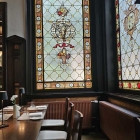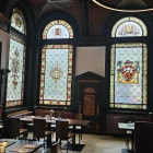Die großen Farbglasfenster, jedes Fenster mit einem anderen Motiv.