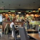 Das Restaurant ist kaum größer als ein mittleres Wohnzimmer; es gibt Platz für vielleicht 20 Personen. Solitäre Gäste können auf Hockern am Fenster sitzen und beim Pholöffeln die Passanten an sich vorüberziehen lassen.
