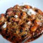 Auf gleichem Niveau befanden sich übrigens auch die in Tomaten-Spinat-Sugo badenden Gnocchi, für die sich meine Frau entschieden hatte. An Soßenarmut litt ihre „Nockenpracht“ nun wahrlich nicht.