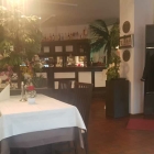 Vorm Restaurant befindet sich ein großer Biergarten mit Grill, den Zweckbau aus den 60ér Jahren betritt man durch zwei Türen. Wir wurden von zwei freundlichen, jungen Damen begrüßt, und da ein Großteil des Restaurants um diese Zeit noch frei war, hatten wir freie Platzwahl.