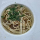 Für meine Frau eine Suppe, Rinderkraftbrühe mit Flädle und Gemüsestreifen war ihre Bestellung an unsere Servicekraft.