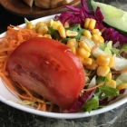Zu beiden Gerichten wurden auch noch zwei Salatschalen gereicht. Dort waren Tomaten und Gurkenstücke verarbeitet; ebenso diverse Salatsorten und Mais. Die Marinade war leicht und mild gewürzt. Der Geschmack war für uns perfekt.