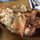 vorweg gibt es stets reichlich Brot und drei Aufstriche: würzig, mild und scharf.