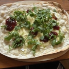 Die Flammkuchen waren üppig mit Rucola belegt, darunter dann Brie und leider Preiselbeermarmelade, der Rand war ohne Belag.