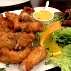 Hier servierte man vier recht teiglastige, kompakte kleine Klumpen, ebenfalls mit dem lieblichen Curry-Mango Dip, den man zum Fisch gesellte.