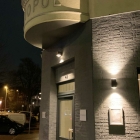 Die Fassade des altehrwürdigen Gemäuers ließ noch historistische Gene erahnen, die stilvolle Beleuchtung tauchte das Gebäude in eine einladende, abendliche visuelle Grundstimmung und nicht nur das grau verklinkerte Erdgeschoss versprühte gar einen Hauch von geschmackvoller Noblesse.