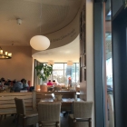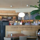 Wenn man rein kommt ist der Verkaufstresen für den Bäckerei Verkauf. Rechts gelegen gibt es dann die Tafeln an der Wand mit den Gerichten und den Bestellbereich für Gäste die hier speisen. Nach hinten gegangen gibt es dann die verschiedenen Sitzmöglichkeiten.