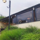 Zeit sich umzuschauen. Und das sah doch ganz nett und gemütlich aus.Leider hob ich den Blick zu weit und ich sah die Stoffunterspannung des Daches. Uiuiui, das sah aber nicht ganz so gut aus! Da sollte man vielleicht was machen gegen die Wasserflecken. Ganz klar, ein Wellblechdach sieht nicht gut aus und ist auch schallhart. Aber die Wasserflecken sehen auch nicht prickelnd aus.