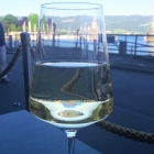 Nun aber zu meinem Essen. Eigentlich erhält man am See vorzügliche Zander, Egli und Felchen. Im Ottimo ist allerdings eher Pizza und Pasta angesagt, wonach mir allerdings gerade der Sinn gar nicht steht. So ist der Insalata Nizzarda (15,90 Euro) auch eher eine Verlegenheitslösung. Und sieht auch so aus. Lässt sich mit viel Pfeffer und Salz geschmacklich etwas aufpeppen. Ob es nötig gewesen wäre, dafür ein Fischbesteck zu reichen? Ich bin etwas ratlos. Zum Trost ist das später ausgelieferte Weissweinschorle (4,90 Euro) von unbekannter Provenienz immerhin sehr frisch und grosszügig eingegossen.