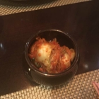 Ein Schüsselchen Kimchi gab es hier auch mit dazu. Der Kohl noch etwas fester in der Konsistenz und in einer scharfen, tomatigen Paste eingelegt. Verfeinert war er noch mit frischen Koriander. War sehr lecker.