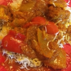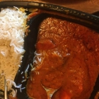Tikka Masalla – eingelegtes Hühnerbrustfilet gegrillt in Tomaten-Curry-Sauce mit Reis (9,90 €)