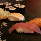 Gebackenes war nicht mehr zu erkennen. Ich erlaubte mir die Frage, warum bei einer Platte für 2 Personen nur 3 Nigiri (1 x Garnele, 2 x Thunfisch, 1 x Lachs) enthalten seien.