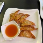 Meine Suppe reichlich und heiß mit guter Brühe und ansonsten etwas Seetang als Geschmacksträger. Die Tofustückchen weich und geschmacksneutral. Die beiden Frühlingsrollen knusprig und mit kohliger Füllung, dazu passte das frische Limettendressing. Die ausgebackenen Garnelen mit der üblichen süßlichen Soße, hier mit guter Ingwernote.
