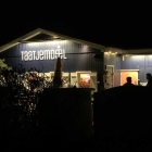 So ging es dann im Dunklen von unserer Wohnung in Rantum die paar hundert Meter an der Straße entlang und dann den Pfad zum Strand hinauf zur Deel. Sommerfotos in obigen Bericht, kommt man in der Winterzeit, leuchtet die Deel in den Dünnen am Strandübergang. Draußen sitzen war natürlich keine Alternative, und von den angebotenen Tischen wählten wir diesen rechts vom Eingang an der Wand zum Strandübergang.