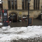 Das Flasche Wasser auf dem Tisch ließen wir stehen, bzw. entfernen, bei Schnee und Frost war uns da nicht nach, grünen Tee und ein Weizenbier bestellten wir vorab. Der freundliche Kellner fragte nach, ob es alkoholfrei sein sollte, da hatte ich schon mal Glück. Meisel’s Weizenbier stand auf der Rechnung, serviert im Glas der Bremer UNION Brauerei. Meine Speisekarte enthielt noch die alte Version, bei meiner Frau war schon die neue Karte einsortiert, bei mir vorne, bei ihr hinten. Ich hatte mich ja vorher auf der Homepage schon mal informiert, daher fiel es mir auch auf. Von der neuen vorliegenden Karte bestellte meine Gattin der Fisch des Tages mit Senfsauce, Polenta & Spinat, ich wählte Tagliatelle mit Lachs.