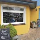 Das Café liegt abseits vom Ortskern mit sehr schönem Garten. Dieser ist mit zahlreichen Tischen versehen und die sind auch nötig.