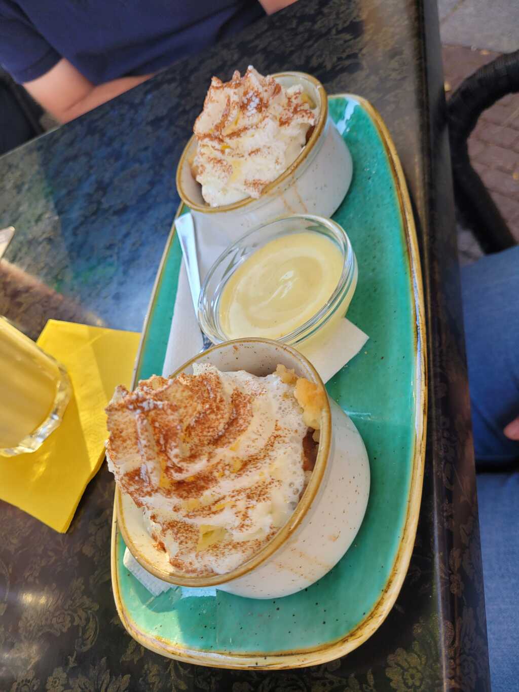 Das kleine Töchterchen hatte heute mal verkehrte Welt gemacht, und so hatte sie sich den Apple Crumble statt als Nachspeise als Vorspeise bestellt. Ok, wer es mag.