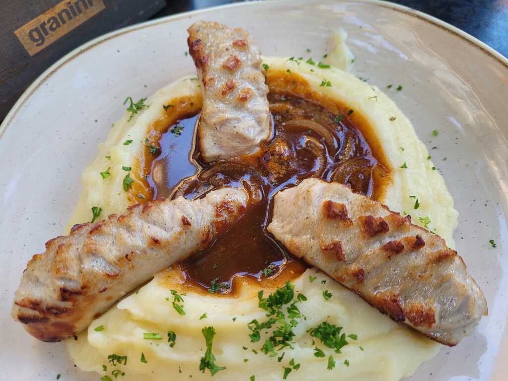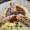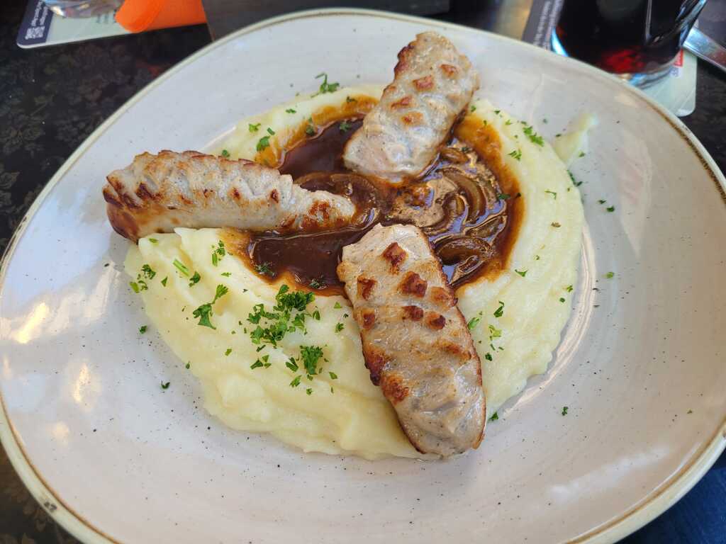· 1x Sausage & Mash - Hausgemachte englische Würste mit Zwiebelsoße, dazu Kartoffelstampf für 17,50 €