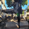 Da es Ende August ein herrlich warmer Sommertag war, wollten wir natürlich draußen im Biergarten sitzen, ein Tisch für uns fünfe war auch frei. Gut, schön ist anders, durch den Verkehr auf der Wilsdruffer Straße und die Einkaufscentren in der Nähe kommt hier draußen natürlich keine Ruhe und Entspannung auf, aber wir wollten ja nur was essen und gut ist.