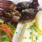 Auch wenn die Speisekarte einige Fleischgerichte aufweist: zu diesem Portugiesen kommt man eindeutig zum Fischessen! Auch wenn wir auf dieser Speisekarte den fast schon lieb gewordenen schwarzen Degenfisch vermissen. Zur Einstimmung gibt’s aber erst mal eine Schale mit schwarzen Oliven und Weissbrot, quasi als Amuse Gueule. Wir trinken einen spritzigen, frischen Vinho Verde, der in Karaffen zu 0,25 / 0,5 oder 1 Liter (13 Euro) ausgeschenkt wird und mit jedem Schluck besser mundet. Das Auto sollte man eh zu Hause lassen, denn der Busbahnhof liegt nur ca. 400 Meter entfernt, die S-Bahn-Haltestelle nur geringfügig weiter. Und Parkplätze sind rund um den Wettbachplatz eher Mangelware.