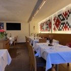 Geändert hat sich, dass keine Musike zu hören ist und an der Längswand ein Mosaik aus Nadelfilzquadraten angebracht ist. Auf den Tischen gediegen Stoffservietten mit dem Besteck und frische Tulpen. Für Pfeffer- und Salzmühlen hat es nicht gereicht, dafür Streuer. Eine Pfeffermühle wurde auf Verlangen gebracht.