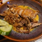 Ich hatte mich hier wieder für die schärfere Variante entschieden, und wählte das Com Xao Xa Ot, das Zitronengras-Chili Gericht. Auch hier war wieder eine große und kross gebratene Ente der erste Blickfang auf dem Teller, unter ihr versteckt das frische, gebratene Gemüse aus Paprika, Bohnen, Ingwer und Zucchini, welches mit Zitronengras und Chili versetzt eine angenehme Schärfe erzeugte ohne aufdringlich zu werden. Von den bereitgestellten Saucen am Tisch brauchte ich mich nicht bedienen, denn der Koch hatte hier meinen Geschmack perfekt getroffen.