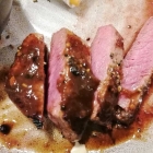 Mittlerweile hatte der Saboteur fertig sabotiert und der Chardonnay wurde entkorkt bzw. aufgeschraubt. Der Stimmung tat dies keinen Abbruch, im Gegenteil; angesichts der Hauptgerichte, die nun folgten, gab es aber auch Grund zur Freude. Meine zwei Begleiter hatten wieder zusammengefunden und bestellten sich jeder ein Rumpsteak (25,90 €). Ich bekam ein Stückelsche vom Marco seinem und sach nur: Ssuwiiiid! Verboten zart war‘s, das Rindlein. Und die Sauce dazu: Holländisch, aber annerschter… Die beiden Steakholder werden die passenden Worte zeitfern finden.