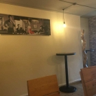Es gibt hier verschiedene Bereiche zum Platznehmen. Teils eine Bank mit kleinen runden Tischen und einen Stuhl mit dazu