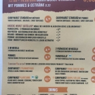 Über der Theke befinden sich die Speisenangebote und es liegen ein paar Flyer aus.