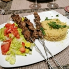 Zu gerne hätte ich noch die mit Fisch, Meeresfrüchten und Glasnudeln gefüllte „Meeres-B’stilla“ probiert, aber da lagen ja auch noch drei gegrillte, zuvor in marokkanischer Chermoula (Kräutermarinade) eingelegte Lammspieße (17 Euro) vor mir, die auch verzehrt werden wollten.