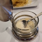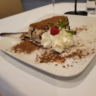Das Tiramisu ein Traum. So etwas geht nur in Masse zu machen. Der Löffelbiskuit schön durchweicht von dem Kaffee-marsala Likör, von dem der Biskuit wirklich reichlich getränkt wurde, und der es ordentlich in sich hatte. Die cremige Mascarpone machte das ganze zu einer leckeren Kalorienbombe. Oben auf, wie gewohnt dunkler, kräftiger Kakao gestreut.