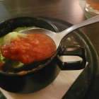 Meine Frau wollte heute wieder diese Tomatensuppe mal anders, und wurde auch heute nicht enttäuscht. Auch heute wieder bedeckte der grüne Rucolaschaum die ganze Tasse.