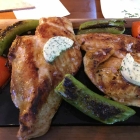 Das Fleisch und das Gemüse waren recht heiß und blieben es auch, denn die Teile lagen auf einer dunklen Metallplatte in einem Holzrahmen. Das Fleisch war knusprig und noch saftig. Das Gemüse war ebenfalls leicht gegrillt und mild im Geschmack.